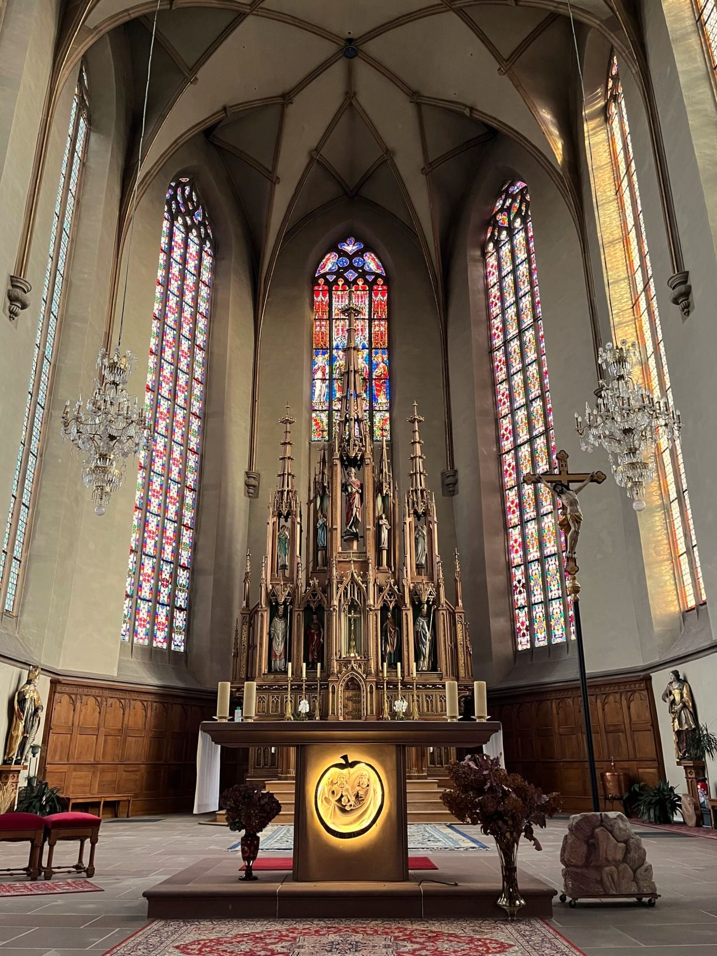 On peut également admirer le maître-autel néo-gothique (1865).